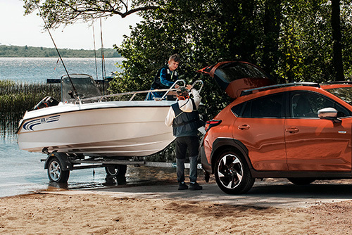 För effektiv körning justerar SUBARU e-BOXER-systemet kraftdelningsförhållandet mellan den 2,0-liters direktinsprutade motorn och elmotorn på växellådan. Vid start och acceleration hjälper elmotorn till med extra kraft, vilket sänker bränsleförbrukningen.